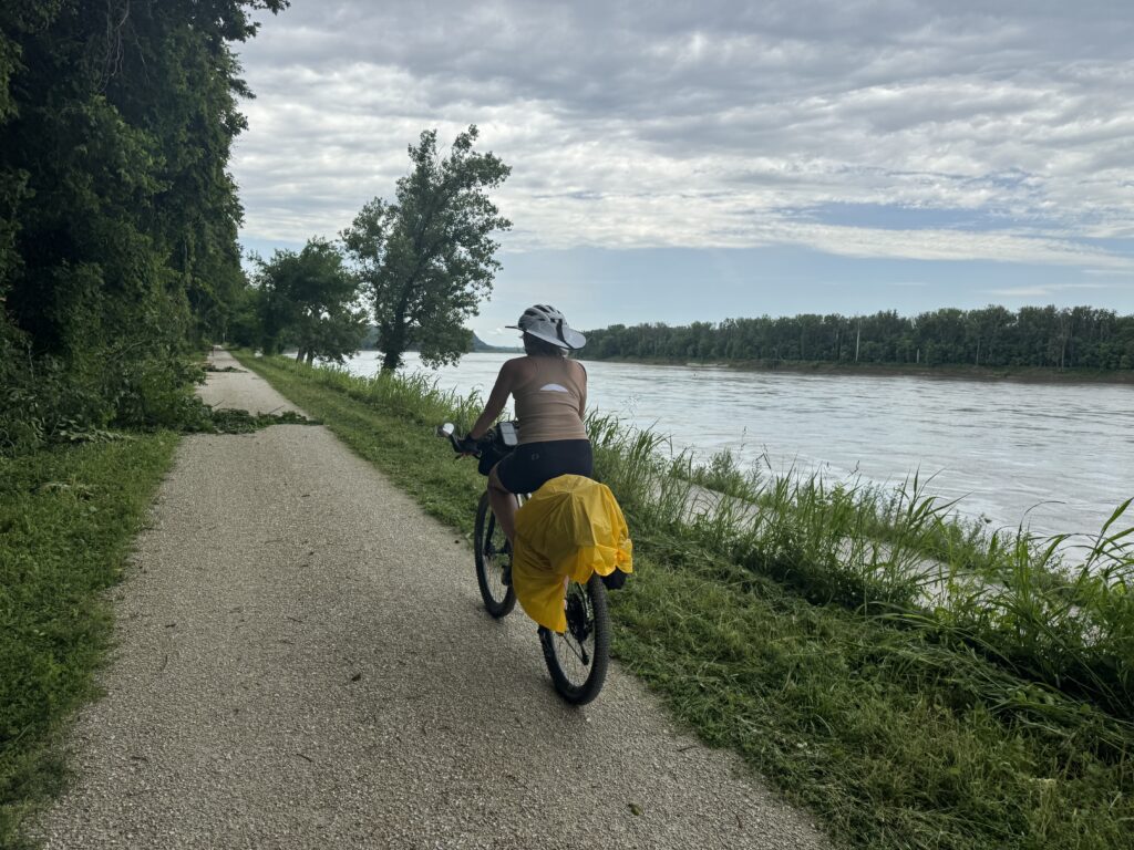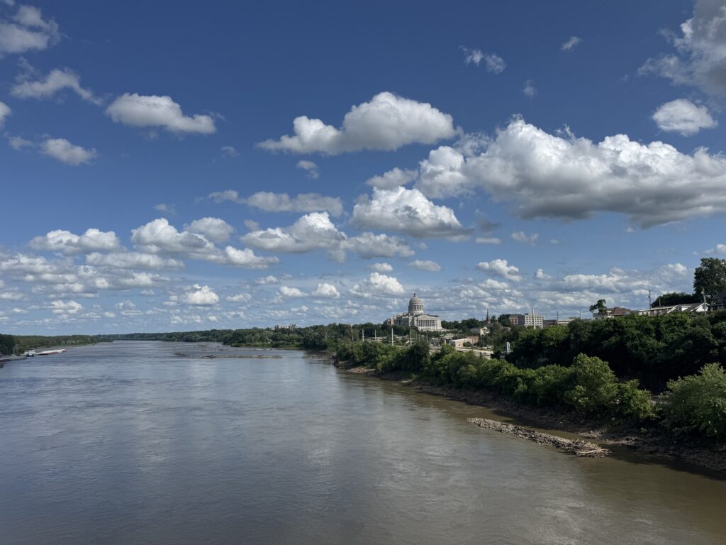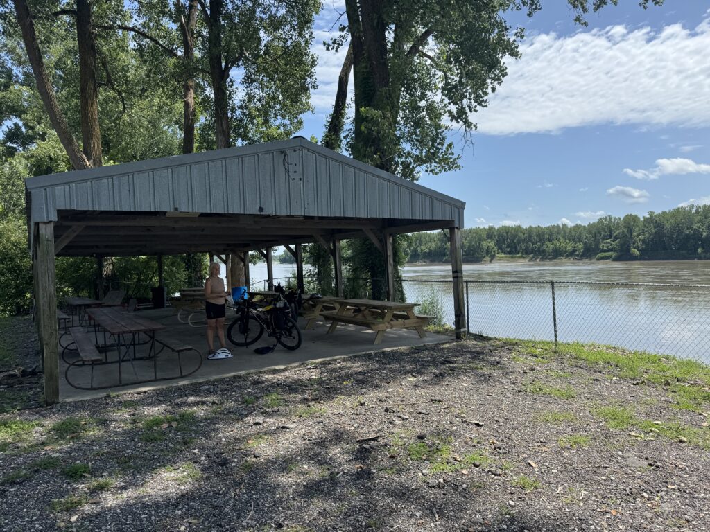 The thing about being the longest day is that it was pretty long. No matter how ambitious we started out, eventually we wore down from thirst and hunger and lugging our luggage. The good news is that from Boonville we more or less follow the river the rest of the ride, and rivers flow downhill. Not very downhill in the case of the Missouri, but no matter how casual, downhill beats uphill.